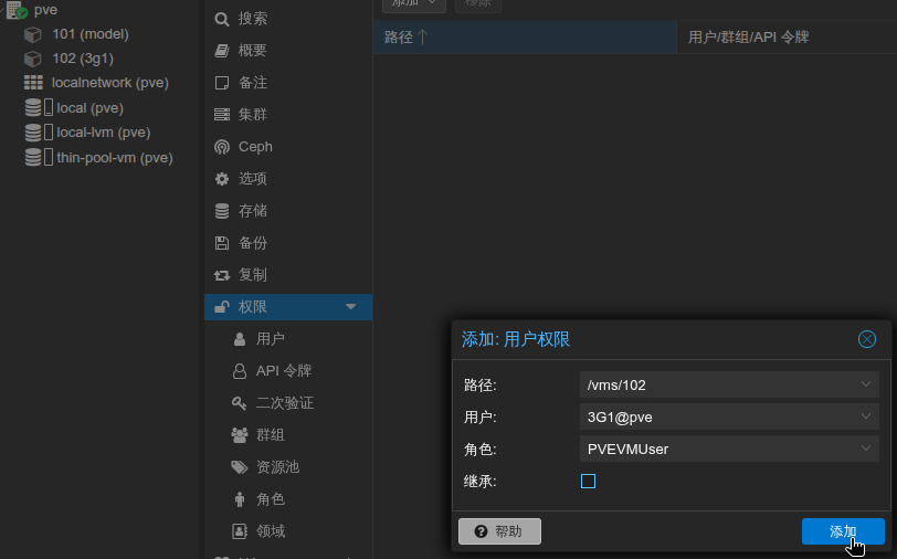 PVE的API很好用,但是我懒得单独写训练平台,机器也没有很多资源开web服务,所以直接用PVE自带的管理面板和RBAC机制实现每组控制一个虚拟机。
