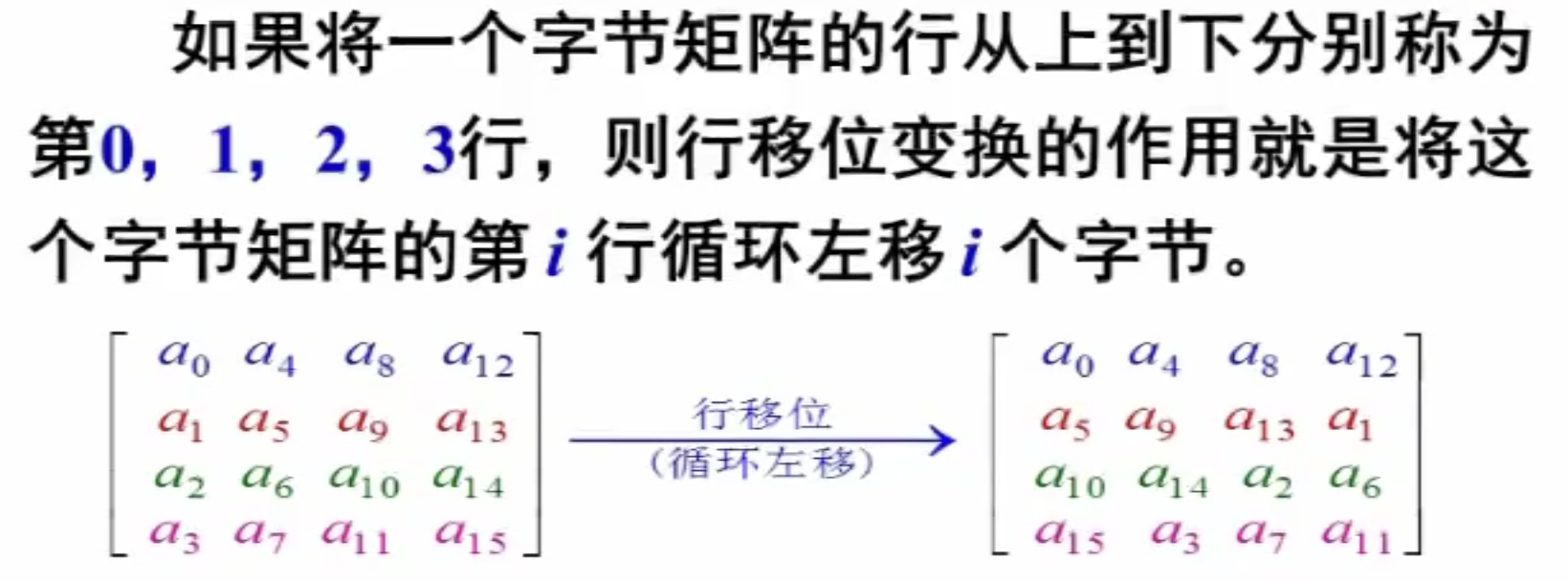 按照如图字节矩阵进行字节的行移位。