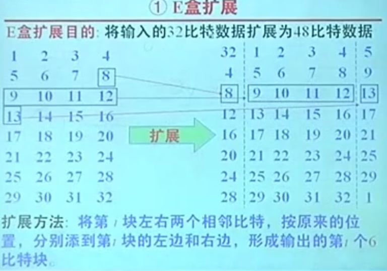 - 输入拓展 48 位,与 48 位轮密钥异或。