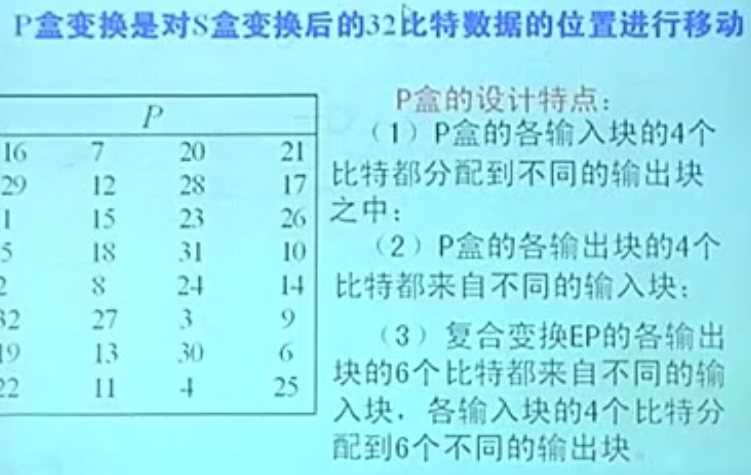 - 32 位进入 p 盒置换得到输出。