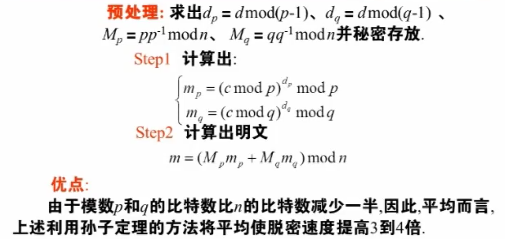 选择加密密钥 ,使 ,由 求出 的逆元 ,将 作为脱密密钥。