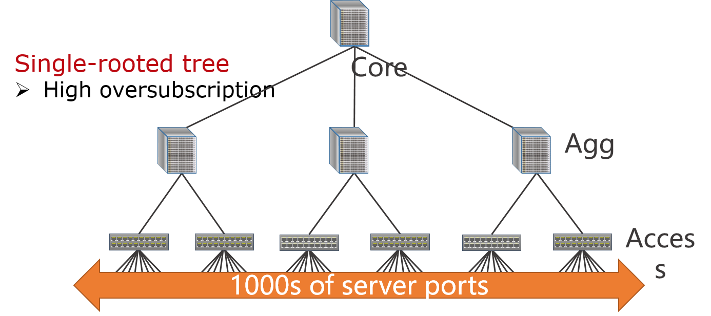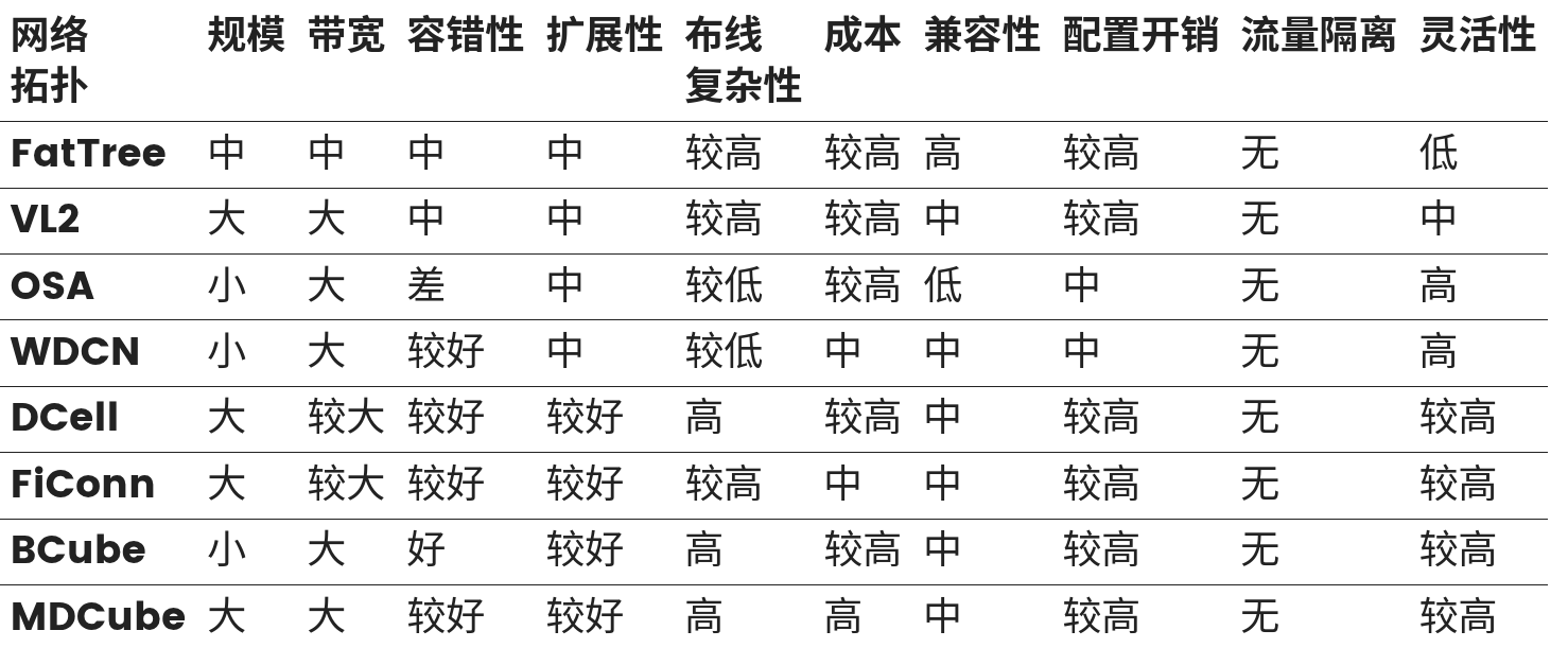 FatTree 结构,消除了上层链路吞吐量限制,内部节点间通讯有多条链路,横向扩展降低网络成本,兼容性好。
