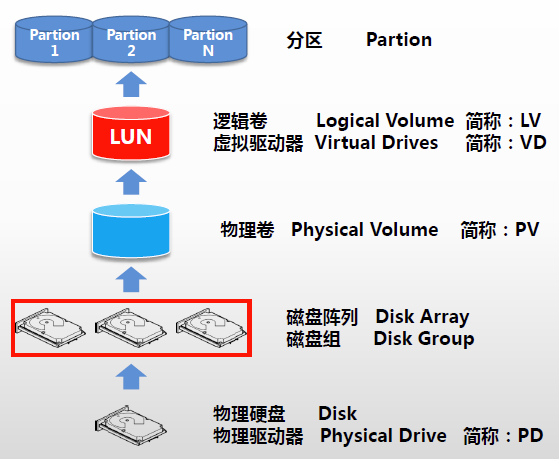 带区(Stripe):是指硬盘阵列当中物理硬盘上“同一位置”的一组条带的集合。